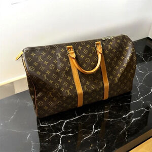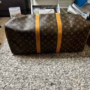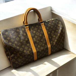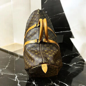 It has darker Patina, some wrinkling and stains on the handle but no cracks.
