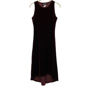 Vintage La Belle Fashions Dark Burgundy Velvet Sleeveless Midi Dress size S