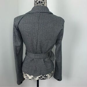 La Classe Couture Vtg 90s Y2K Houndstooth Belted Jacket Black White Sz S