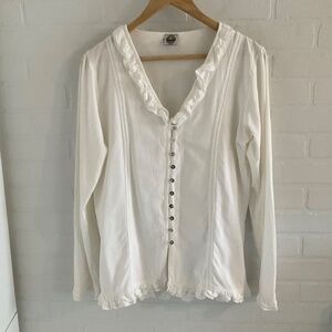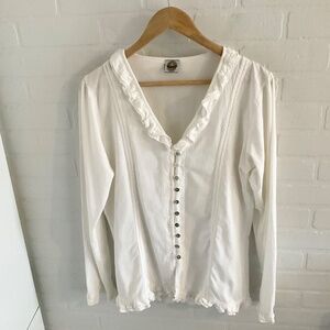 Vintage La Cotonnière Button down Blouse Ruffled Off White Cottagecore Sz XL