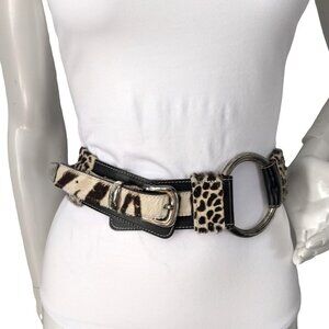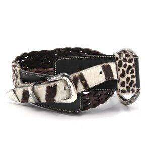 Vintage 90s La Doppia Vita Leather Pony Hair Belt Animal Print Braided Brown White