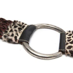 Vintage La Doppia Vita Leather Pony Hair Belt Animal Print Braided Brown White