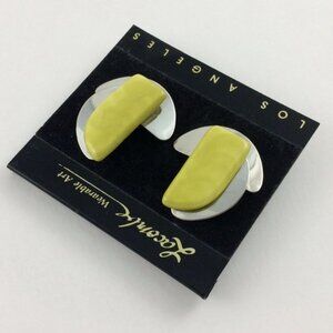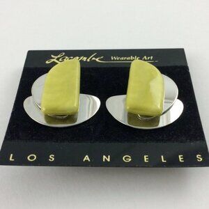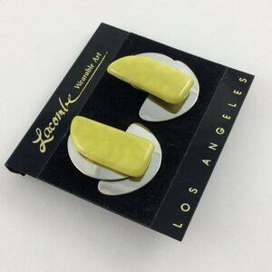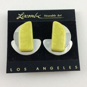 Vintage Lacombe Wearable Art Clip On Earrings Geometric Yellow Silver 1980s Bold