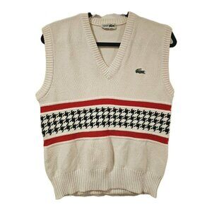Vintage Lacoste Tight-Knit Vest Houndstooth Men Medium Preppy Academia Nautical