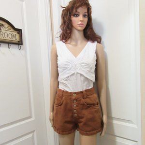 Ladies Size Small button up jean shorts medium color brown