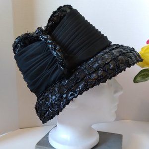 Vintage Lady Beatrice Hat, Made in Canada, Black Woven Straw Hat. Excellent Vintage Condition. Vintage lovers go to vintageglamrevival. com