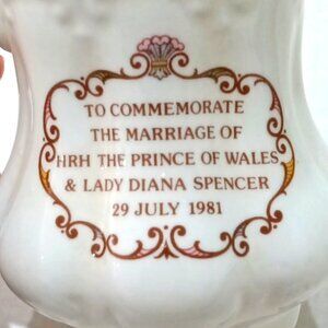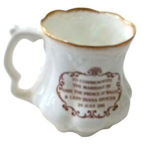 Rare collectable fine bone china mug denoting the event of Prince Charles and Lady Diana Spencer's wedding, in very good pre-owned condition made by Lady Eleanor.