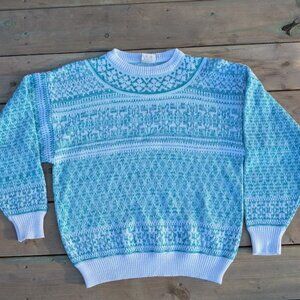 Vintage Lady Foot Locker Green and White Knit Crewneck Made in Korea Size Medium