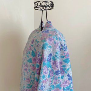 Preloved vintage sweatshirt in all over floral print by Lady Footlocker. Mock turtleneck, drop shoulder, full length. Fun vintage Lady Footlocker tag.