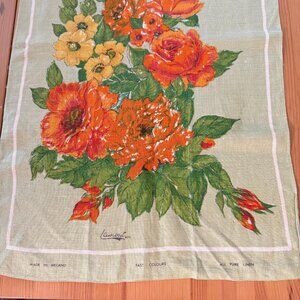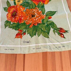 Vintage Lamont 100% Irish Linen Tea Towel Floral Green Kitchen Decor Rustic
