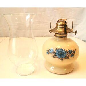 Vintage Lamplight Farms Oil Lamp White Ceramic Blue Floral Milk Glass 1970s