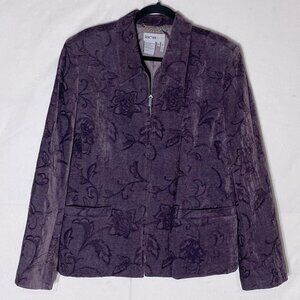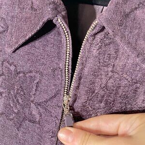 Vintage Lana Lee Purple Floral Jacquard Full Zip Blazer 18