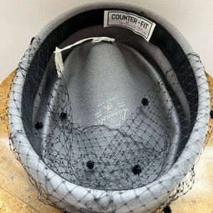Vintage Lancaster Women's Gray Wool Counter Fit By Frank Olive Hat w/ Black Lace.