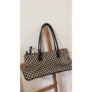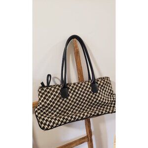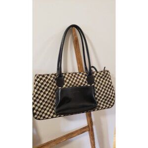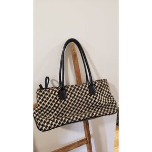 .Vintage Housetooth Wool Purse with Leather Accent. Lancel Original. Paris Couture!