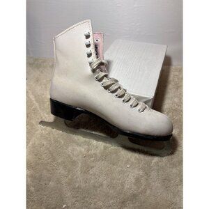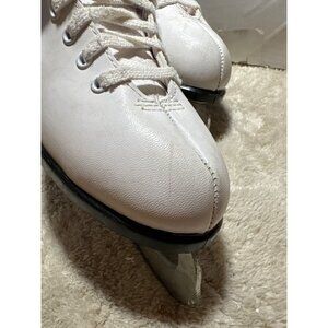 Vintage Lange Classic Ice Skates Womens Size 6 White Leather Canada Figure Skate