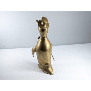 Vintage Large 13.5" brass Penguin figurine, Dapper penguin ornament top hat and