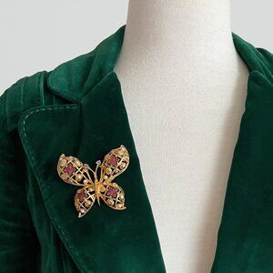 Vintage Large Butterfly Gold Tone Rhinestones & Enamel Brooch