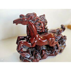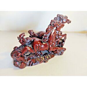 Vintage Large Chinese Carved Cinnabar Feng Shui Lucky 2 Running Horses Figurine 5" long x 2" wide x 3 5/8" high
