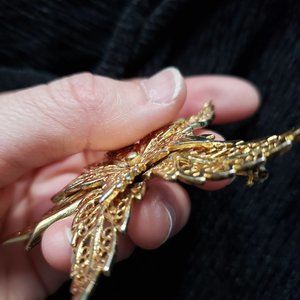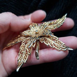 Vintage Large Filigree Gold Tone Five Leaf/ Floral Layered Pin Brooch