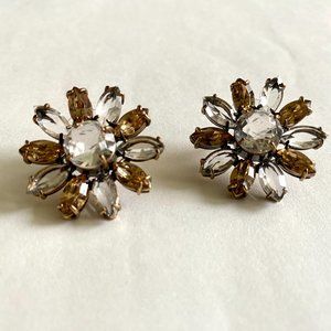 Vintage Large Floral Statement Stud Earrings with Transparent and Amber Petals
