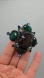 This is a vintage green faceted glass brooch with blue and clear rhinestones.