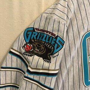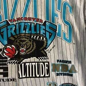 Vintage Large Pin Stripe 1994 NBA Vancouver Grizzlies T-Shirt 3/4 Sleeve Ravens