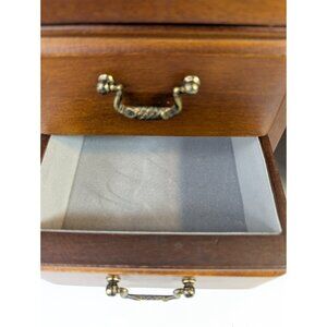 Vintage Large Wood Jewelry Armoire 2 Glass Doors, Mirrors, 4 Drawers Velvet 15"