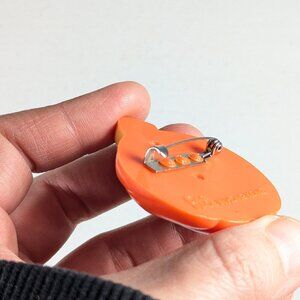 Vintage Laughing pumpkin Halloween brooch, plastic pumpkin pin made in Hong Kong