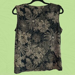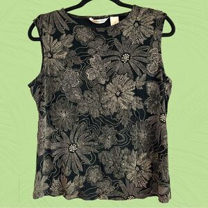Super cute vintage 90s Laura Ashley slinky top. Sleeveless top, high neck. Floral print on black. Size medium, true to size, super stretchy. Excellent condition.