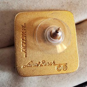 Vintage Laurel Burch Mystery Square Stud Earrings Blue and Green Design Classic