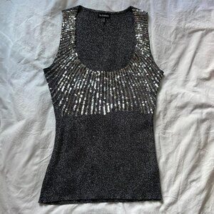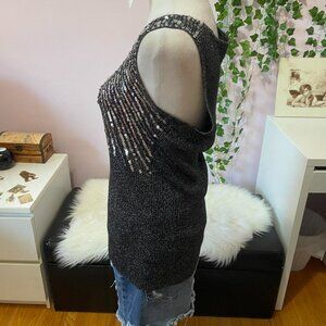 - Cute grey Y2K glam knit top with silver metallic detailing