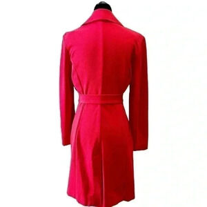 Vintage Le Chateau Trench Coat Red Ponte Knit Duster Blazer Belted Y2K Small