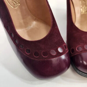 Really nice deep red/wine/burgundy color with suede hole detail on top.