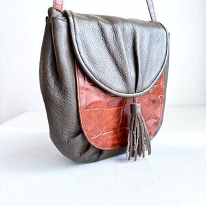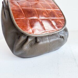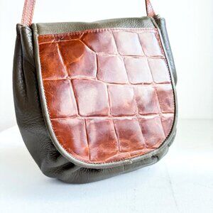 Vintage Leather Croc Skin Oval Crossbody Bag.
