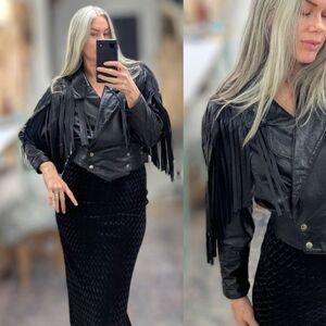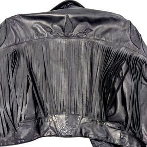 Brand new leather fringe at a thickness that is double that of the original. Leather leaf applique out of the same through the front shoulder and upper center back yoke. Brand new heavy weight satin backed cotton lining.