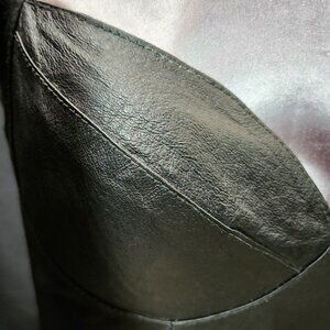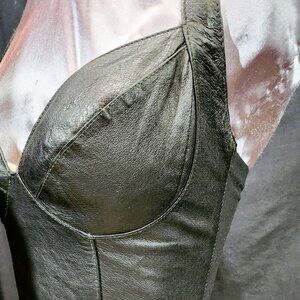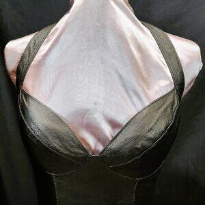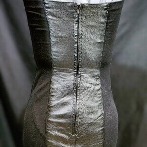 Bodycon Wilson's Leather Black 1990's Vintage Leather Dress with cloth stretch panels. Size XS US/Can. Very gently preloved and stored. Genuine Leather. Fully lined. Despite being XS there is more than enough cup space for a lady up to about high C cup. Comfortable.