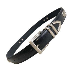 Men's Black Leather Golf Belt with Golf Club Medallions. This stylish golf belt features a classic design with golf club medallions, perfect for the golf enthusiast. The black leather is durable and the silver-tone hardware adds a touch of sophistication.
