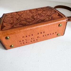 Vintage Leather Hand Tooled Floral Leaf Print Custom Made Structure Shoulder Bag