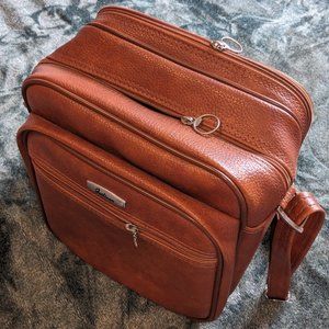 Really good condition! Three compartments. Could fit a small laptop. Adjustable strap. Great zippers. Metal feet. Travel tag.