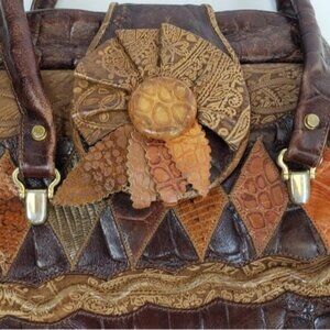 What a great piece, vintage leather shoulder bag. Made in Columbia. Brown on brown with patchwork diamonds. Western