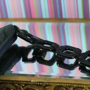 Vintage Leather Purse Dark Navy. Lucite and Leather Strap