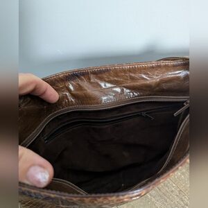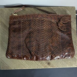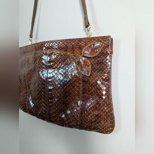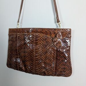 Vintage Leather Purse, Embossed Faux Snake Skin shoulder bag brown 1970s