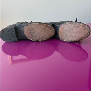 Black Leather Roper Boots with Biltrite industrial rubber sole. Excellent quality will last forever. Size 4.5 Youth or 5 Womens. Made in Canada. Heel height is 1.25”