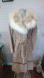 Vintage tan Leather trenchcoat with white Fur collar By Jeno De Paris Fits Small