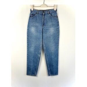 Vintage Lee High Rise Blue Jeans in a Light Blue Stone Wash • Ankle Cut • 5 Pockets • 100 Percent Cotton • Leather Patch • Size Small • 1990