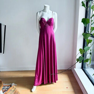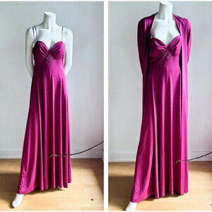 Vintage Lee Jordan Plum Purple 2 Piece Maxi Dress w Rhinestone + Coat M