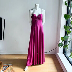 The gorgeous plum purple maxi dress is made of high-quality polyester material and features a flattering regular size fit, perfect for any evening occasion.