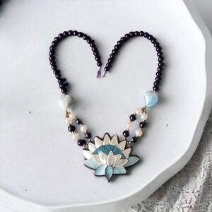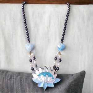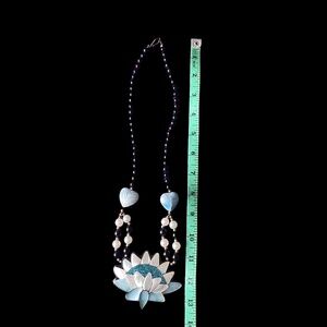 Vintage Lee Sands 1980's Large Mother of Pearl Lotus Flower Faux Pearl Necklace