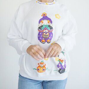 Vintage Lee White Purple Rabbit Pumpkin Puff Print Crewneck Sweater 20W