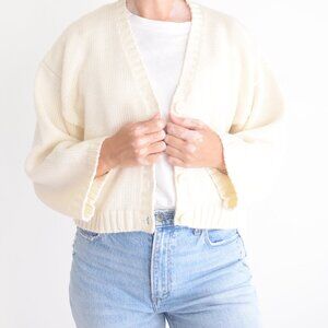 Vintage Lee Wright Cream 16% Wool Knit Button Cropped Cardigan Sweater M